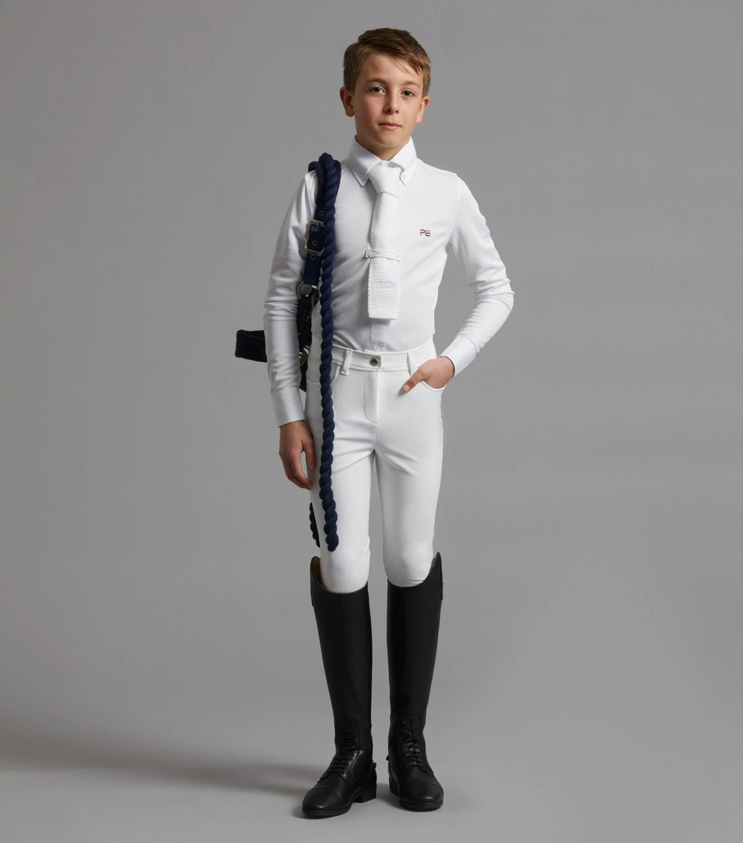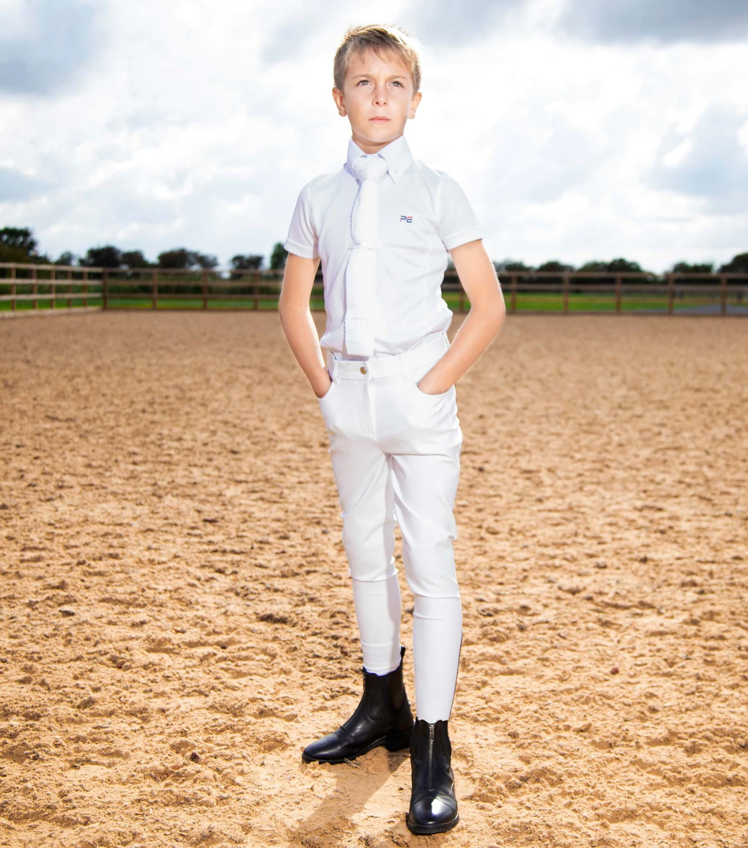 Excellent stretch properties combined with patterned gel knee patches to offer greater security in the saddle, make these boys riding breeches perfect for everyday training and competitions.