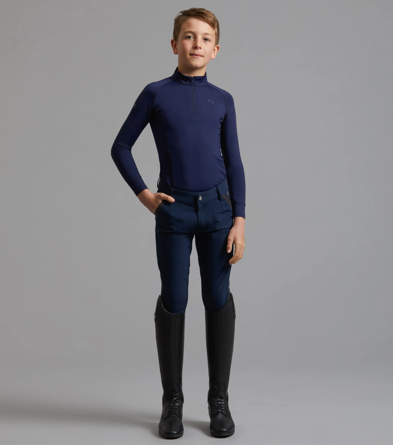 These technical boys riding breeches are crafted from a durable 4-way stretch fabric, providing a comfortable fit and practical use every day.Â