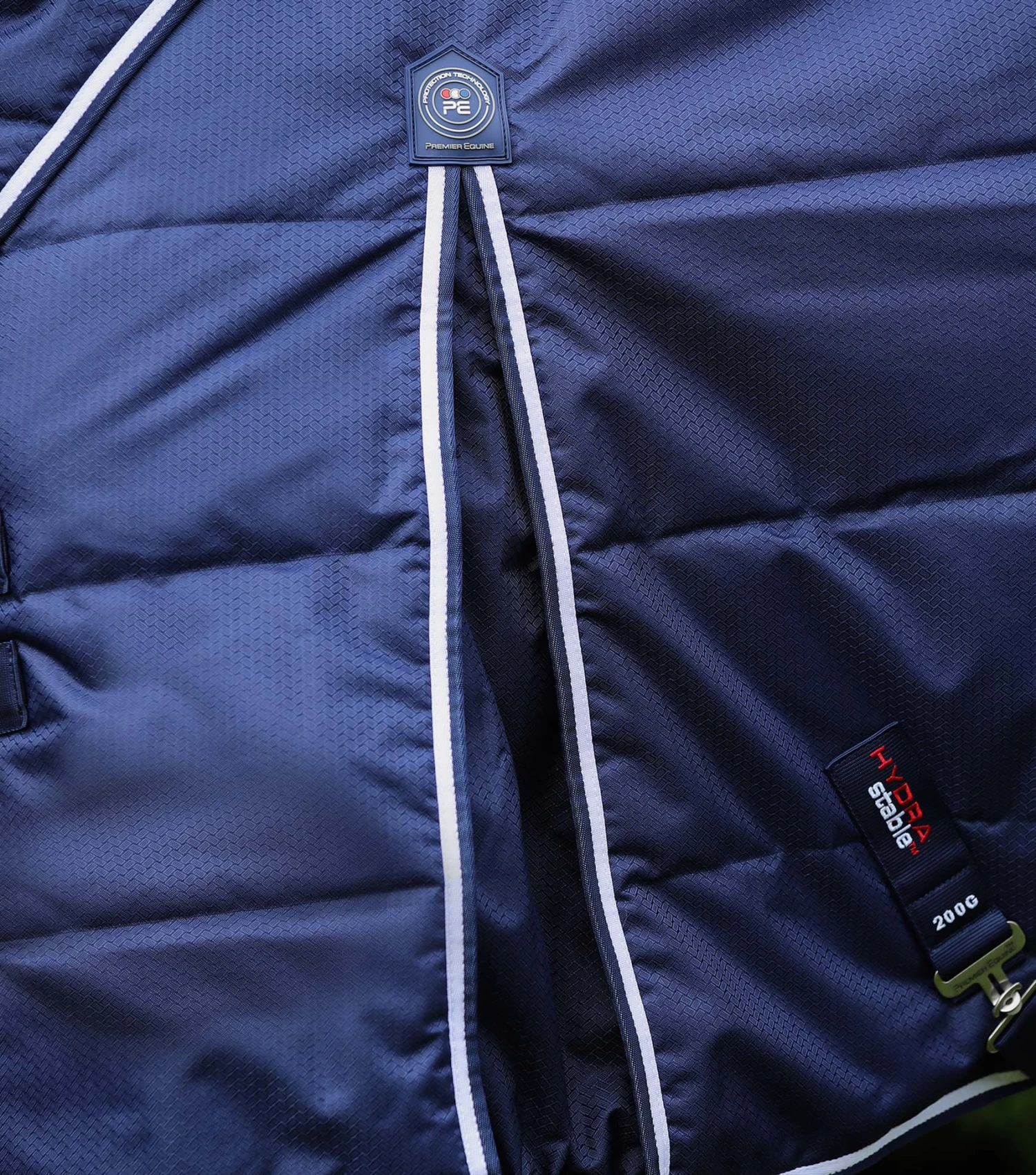The Hydra 200g Stable Rug is crafted from 600D triple diamond weave polyester with a Teflon coating for stain resistance and moisture protection. Beneath the luxurious channel quilting, this rug includes a protective membrane that repels water and moisture as required, ensuring added protection and comfort.Â