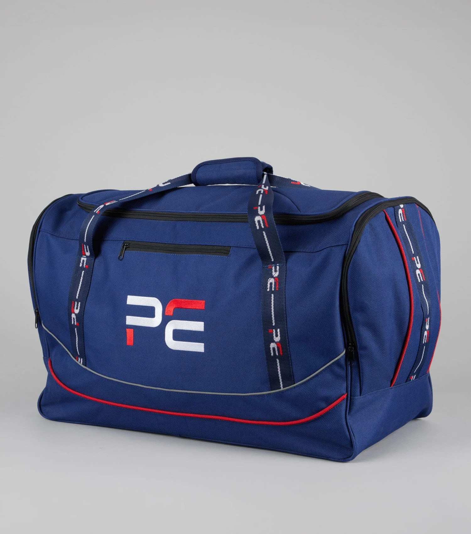 With a reinforced bottom this equipment bag is ideal for carrying a range of equestrian equipment and sturdy carry straps with a Velcro wrap-around handle allow for comfortable and secure grip when carrying. Finished with sporty style lines and signature PE branding.