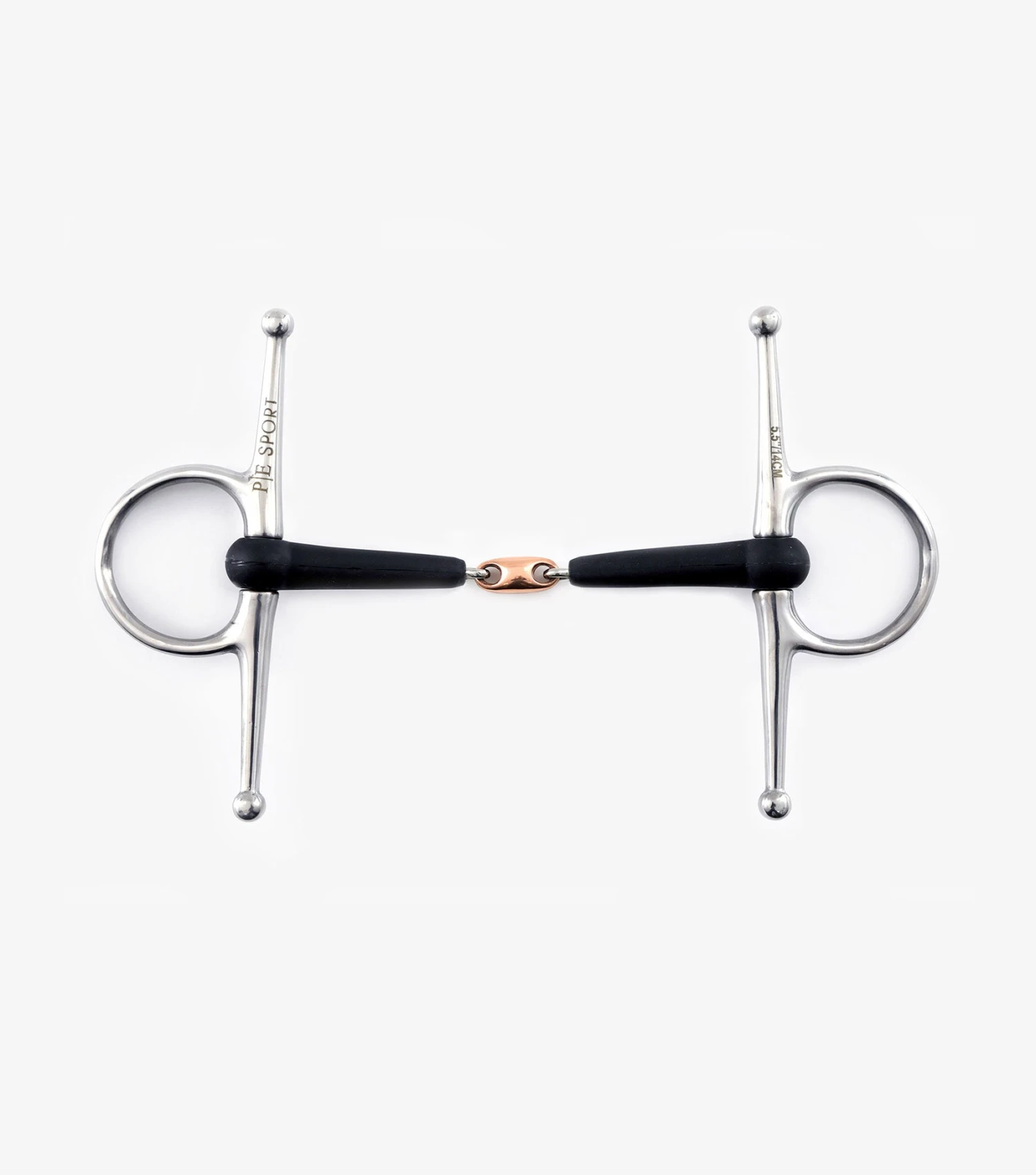 The double jointed, durable rubber mouth piece with copper lozenge offers a higher level of comfort in the horse’s mouth. Copper lozenges help to distribute pressure over both the tongue and bars of the mouth, encouraging mouthing and contact. It also helps to prevent pinching of the lips and around the bars of the mouth whilst reducing the nutcracker action of a single jointed bit. Ideal for horses that need a touch more braking power but are perhaps sensitive in the mouth.